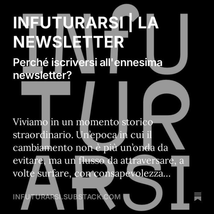 Se vuoi provare a seguirmi qui trovi il link a INFUTURARSI | NEWSLETTER e se i contenuti ti interessano potrai iscriverti e condividerli.